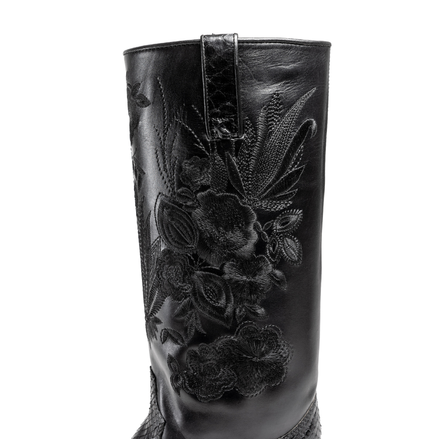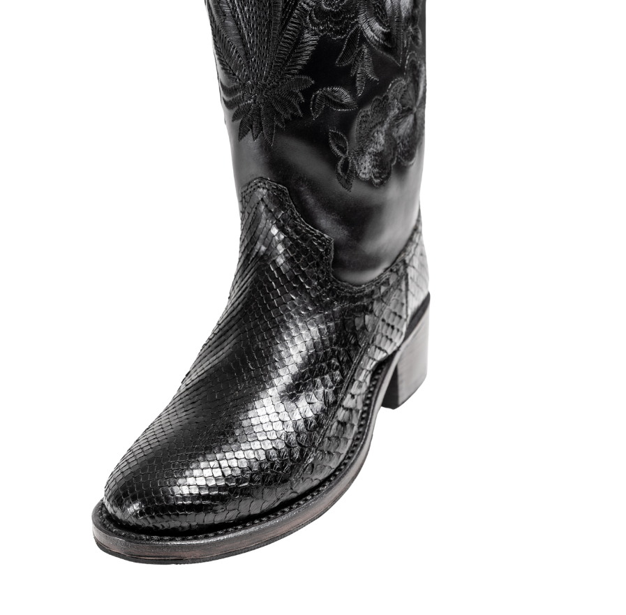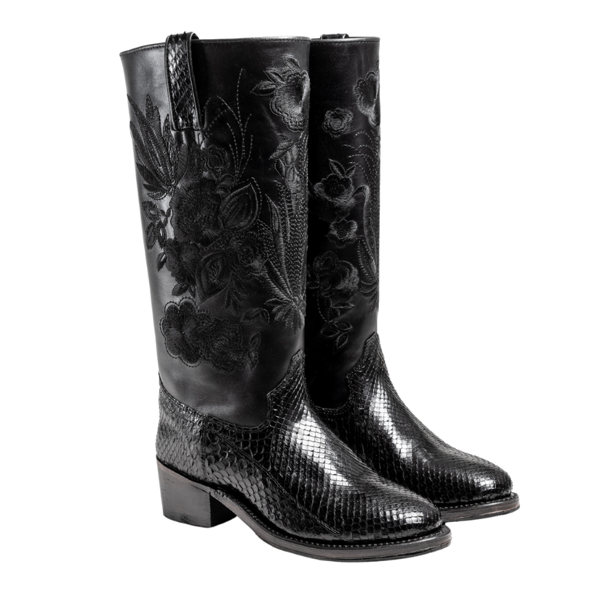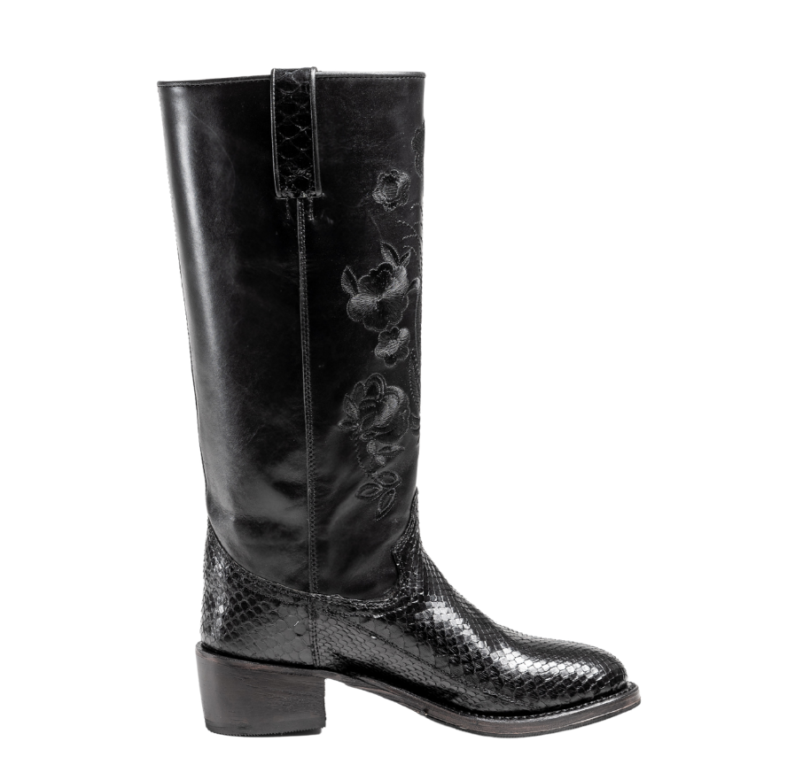 Eine meisterhafte Verbindung aus traditioneller Haut und der Raffinesse von exotischem Python. Da es sich um echte Naturmaterialien handelt, besitzt jeder Stiefel eine eigene, unwiederholbare Identität: Die natürliche Anordnung der Schuppen garantiert, dass kein Paar dem anderen gleicht. Ein organisches, elegantes und zutiefst exklusives Designobjekt.