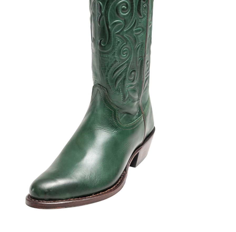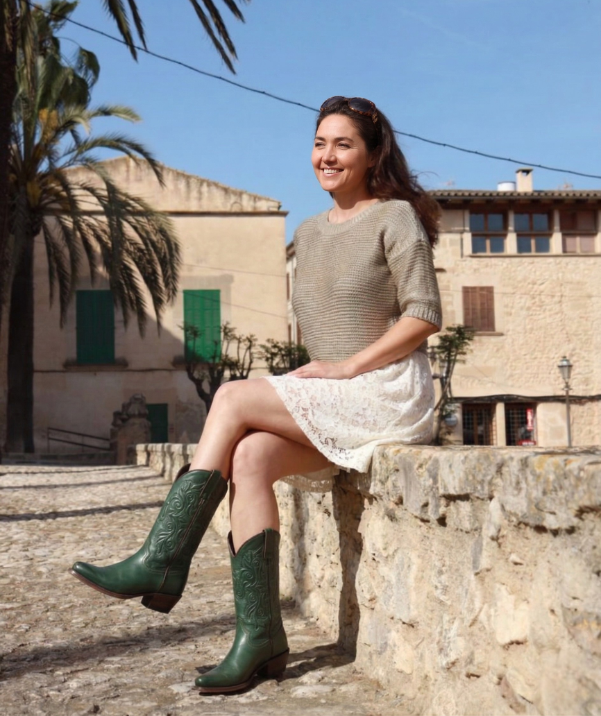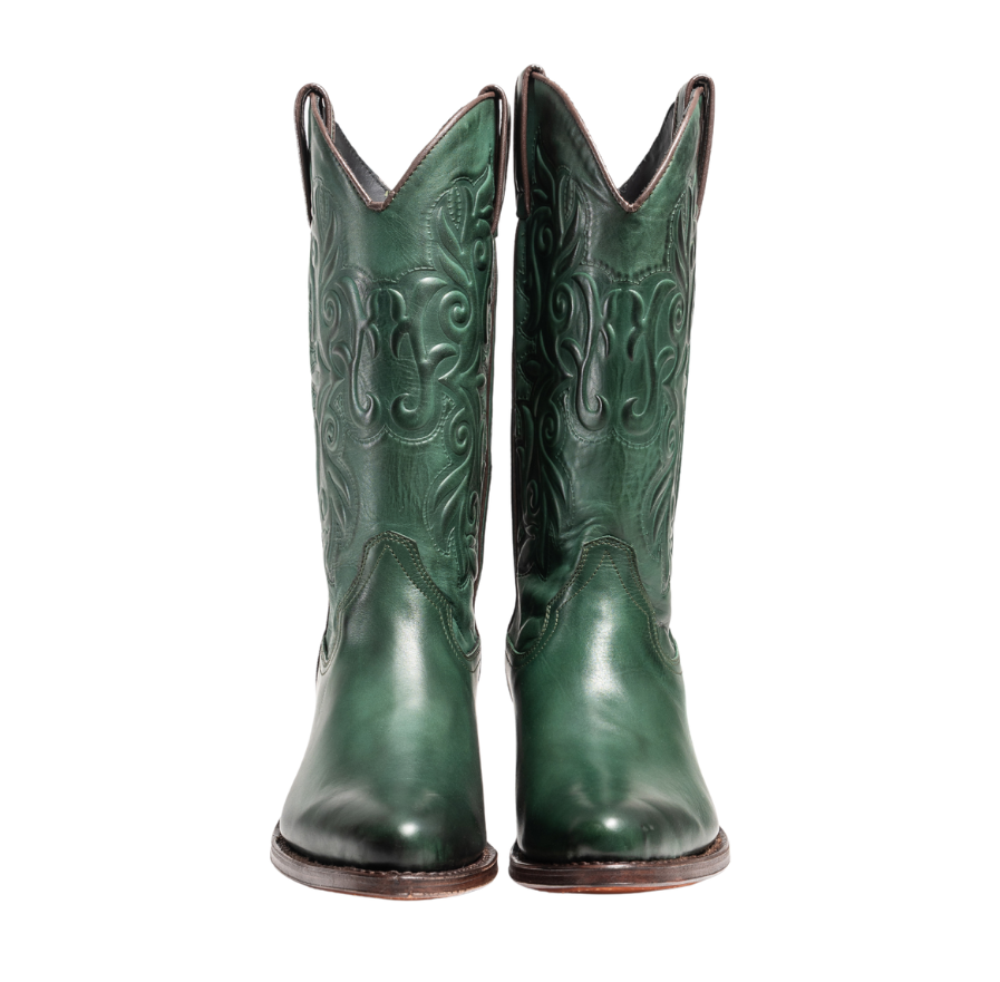 Modelo cowboy con piel en color kaki. Cada día que pase esta piel estará más bonita. Fíjate en el "repujado"de las cañas: utilizamos un diseño antiguo y característico de las botas cowboy, haciendo de este modelo el preferido para tí. La piel es tratada con un "brash" de cera de abeja que da un contraste de tonos a la bota y el trabajo de raspado creando un efecto de envejecido a la piel. Llévate unas botas únicas con un look vintage. ¡Pruébalas!